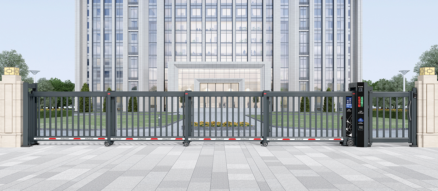 搭配車牌識別系統(tǒng),實現無人值守車輛快速通行及收費功能,支持遠程操控和實時監(jiān)控,操作簡單,效率高?,適合超大門洞凈空要求的場所?